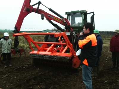 LIPA社の林業用クラッシャーUFMが入荷し、鶴居村森林組合様で現地検討会が開催されました。
