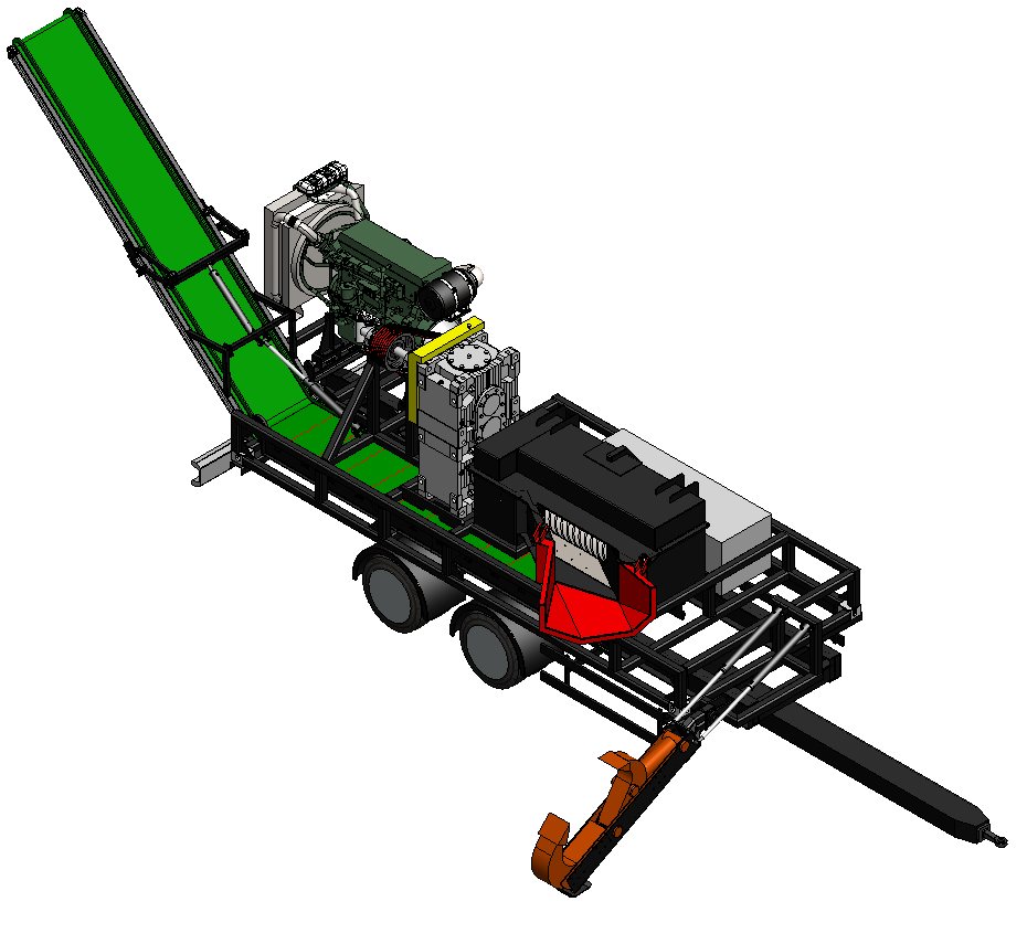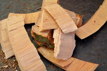 スクリューチッパーでは、バイオマス発電に最適な4cmの幅のチップを排出します。