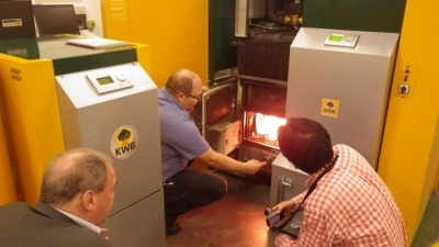 KWB社では実際のボイラーを使用してトレーニングをします。