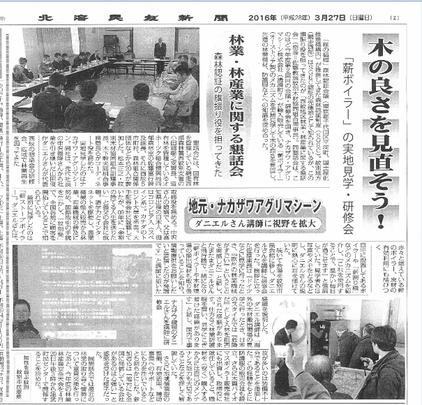 民友新聞掲載 2016/03/31 09:57 新着News 先日、紋別で行われた西紋地区林業・林産業に関する研修会、 懇親会の様子が地元の新聞に掲載されました。 « 一覧へ戻る » PICK UPおすすめの記事 トラクター駆動の穀物乾燥機 AGREX社 2018/02/13 17:01 新着News Fendt 939 Varioを輸入代行しました。 2024/04/05 19:55 新着News 岩手県Musmax9XL納品 2021/05/26 15:40 新着News