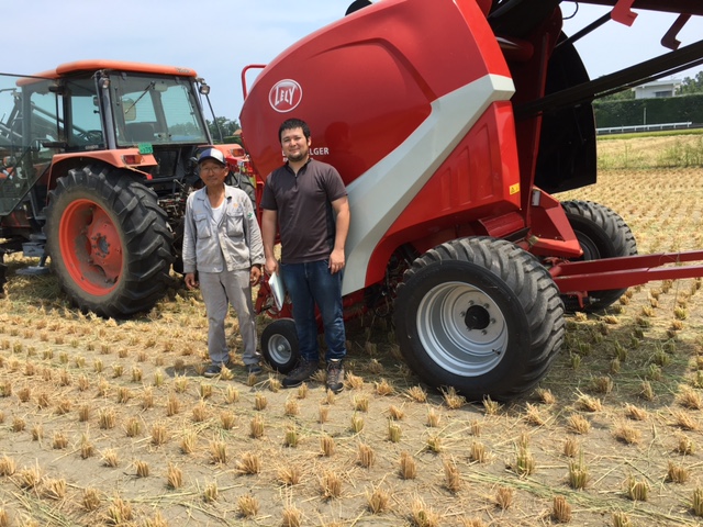 参りました。徳島県では既に米の収穫が始まっており、稲わらをロールに