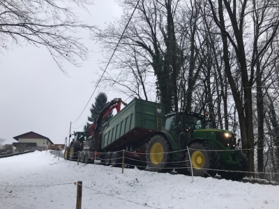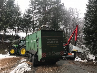 日本では高いコストをかけて木材をチッパーに集めています。木材はなるべく運ばずにチッパーが木材に近寄っていくオーストリア、雪道でこの狭さの坂道にチッパーを持って来れる運転技術とチッピング技術を目の当たりにし、チッピング職人に感心した1日でした。