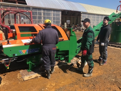 弊社メカニック達が1泊2日で組立と納品指導を行いました。お客様はすぐに操作方法を覚えてスイスイと薪を割っていらっしゃいました。
