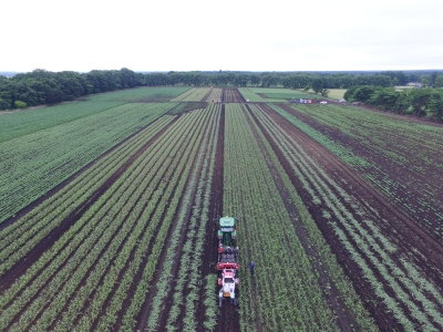GPS搭載トラクターにより、畑をまっすぐ走って高精度で収穫出来ます。