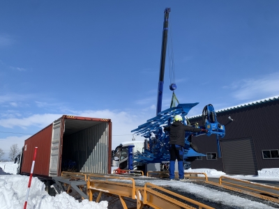 3月に入って気温が高くなり、雪解けもかなり進んできたので、コンテナの荷下ろし作業もやりやすくなってきました。