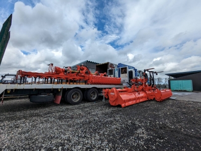 7mの耕うん機械 2024/05/21 16:30 新着News コンテナで機械が入ってくるシーズンです。 今回のメインは7mのパワーハローと6mのロータリーです。 デバニングでここまで迫力あるものもなかなかありません。 *この後、ついていないローラーを組みました。 これだけ爪の数があると、交換するだけでとんでもない時間なので、 お客様はロータリーを強化爪仕様で購入されました。 大きすぎて大型トラックでもギリギリでした。 « 一覧へ戻る » PICK UPおすすめの記事 アグロファクトリー ケンブリッジローラー 2024/03/29 09:22 農業機械 【中古】タカキタ ラップマシン(MF165セット) 2025/11/01 09:00 農業機械 果樹園仕様バギー、マニアスプレッダー納品 2020/09/01 14:44 新着News