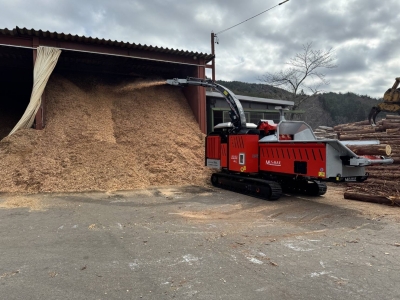 岐阜県高山市のお客様に、弊社主力商品の Mus-Max 木材切削チッパー9XL DLK を導入いたしました。