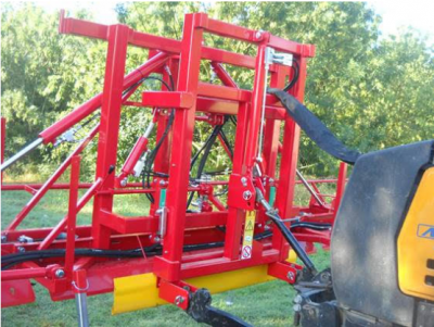 本来、このウィードトリマーはトラクターのフロントヒッチに取り付けて使用する設計です(写真①参照)。