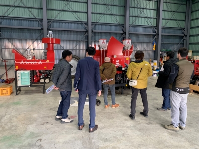 弊社からも、実際の日本の作業環境をお伝えしながら、農家の皆さまが抱える問題をどのように改善できるかお話し、ミーティング後は、弊社が現在在庫している 「ニンニク用真空高速播種機」 を実際にご覧いただき、機械の構造や操作性をご説明いたしました。