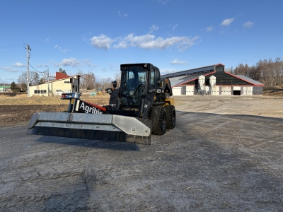 ・トラクターやホイールローダーの前方または後方に取り付け、軽い土や飼料、サイレージ、さらには雪などを搔き集めたり、押し出したりする作業に対応。
