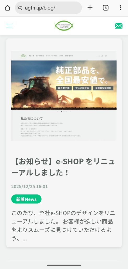 今後ともアグリフォレストマシーンをどうぞよろしくお願いいたします。