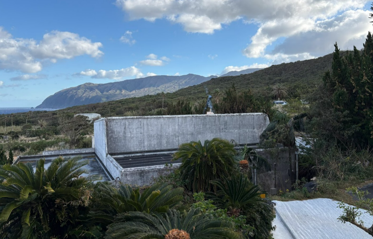 森林におおわれた八丈島(写真左)、リードパークリゾート八丈島(写真右)