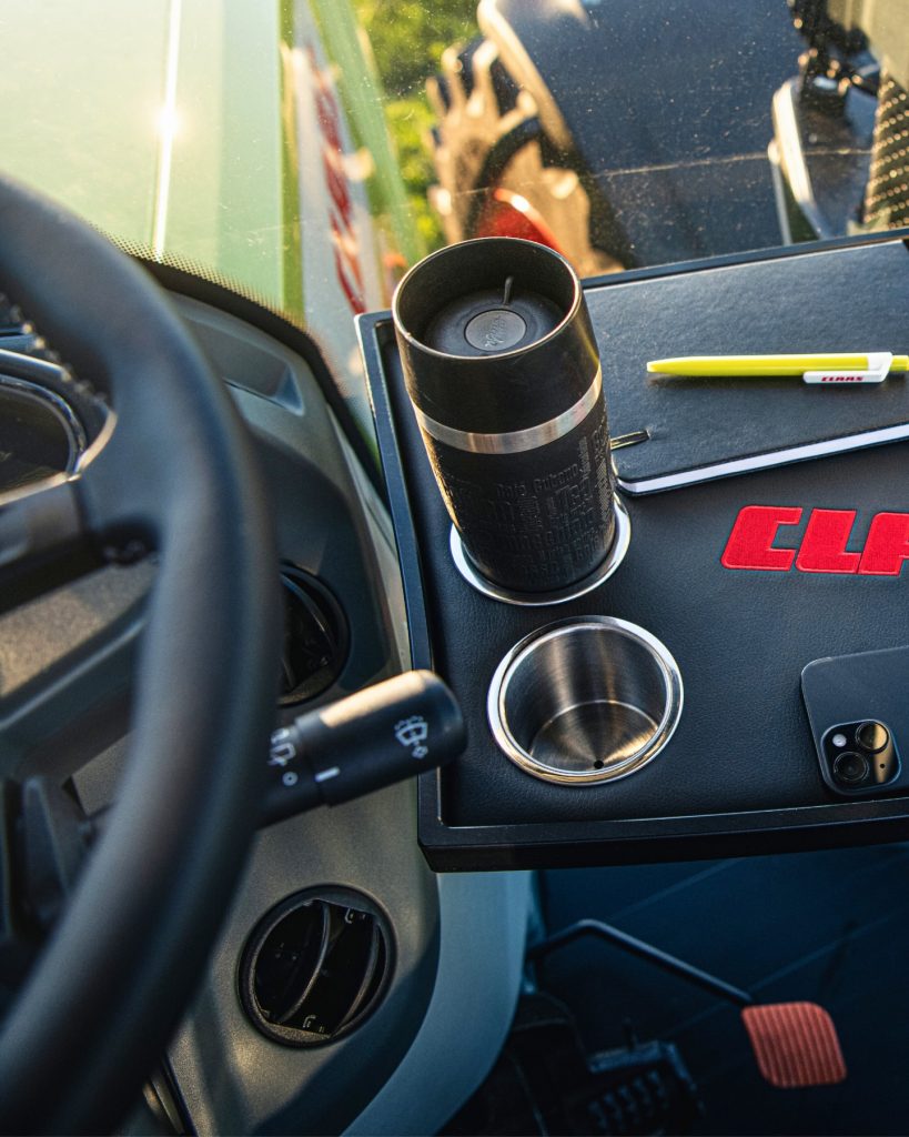 トラクターのキャビンピラー部分にミニテーブルを取り付けるなどすることで、キャビン内に小さな休憩スペースをつくることができます。