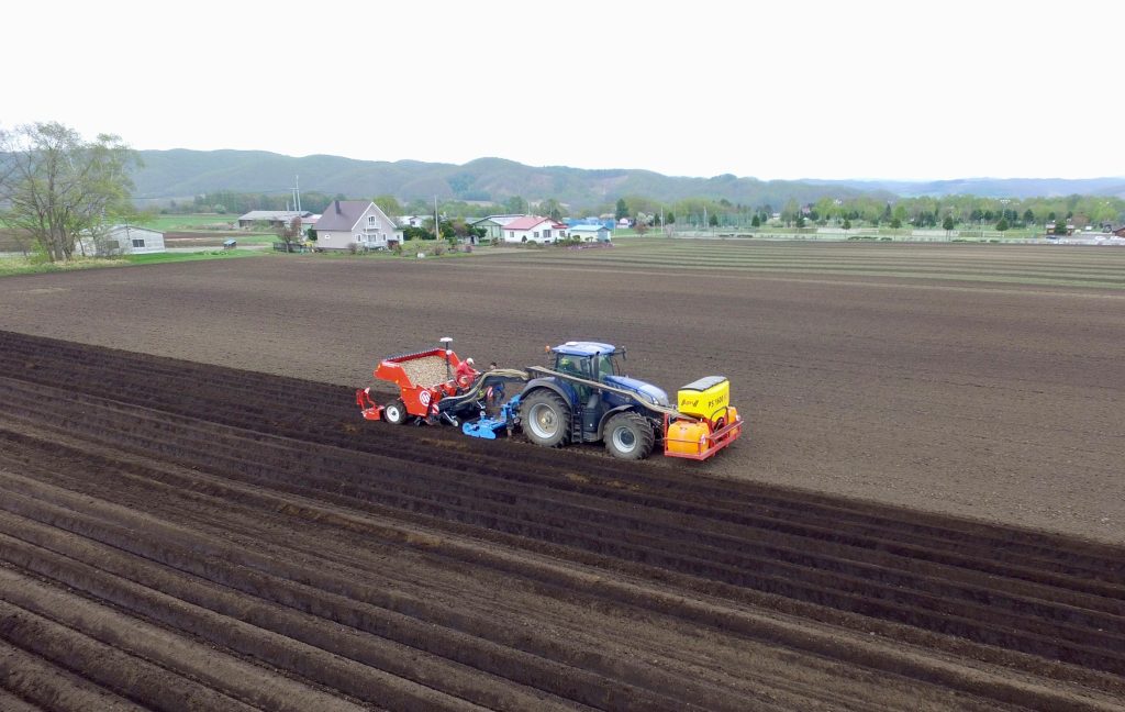 ヨーロッパでは、ポテトプランターにこのシステムを付けて真っ直ぐ植えることは、すでに「当たり前」になりつつあります。