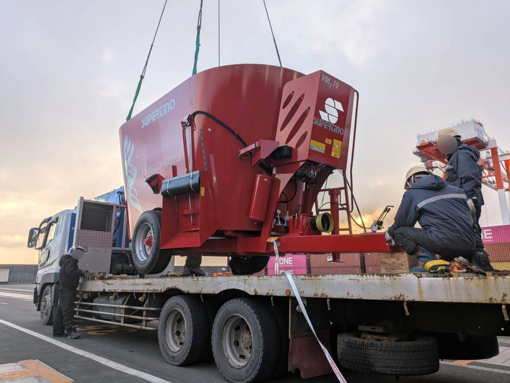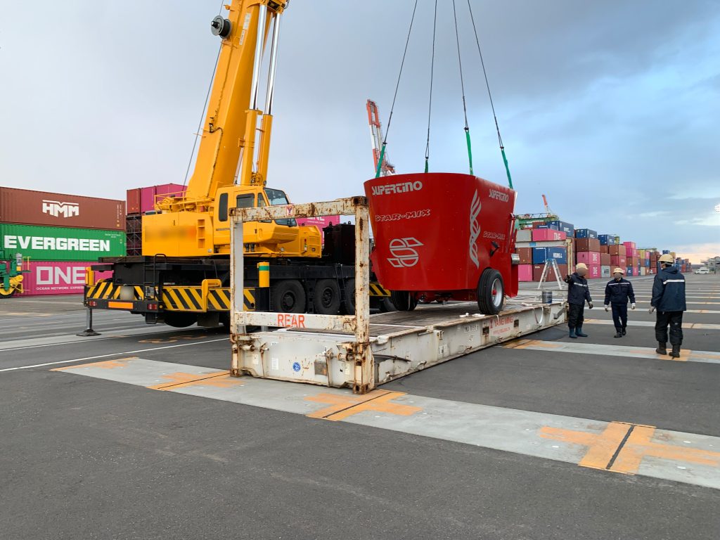 今回は普通のコンテナには入らないため、フラットラックコンテナにて届きました。